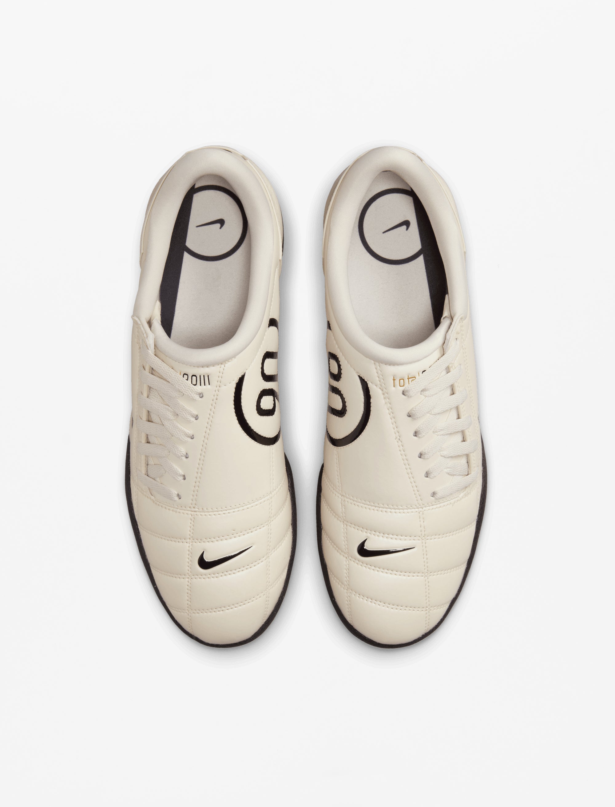 The T90 SP, first introduced in 2000, returns updated for casual wear. This version features a flat rubber sole instead of cleats, keeping the quilted upper and asymmetrical lacing. It has an orewood color scheme with black accents and outsole.