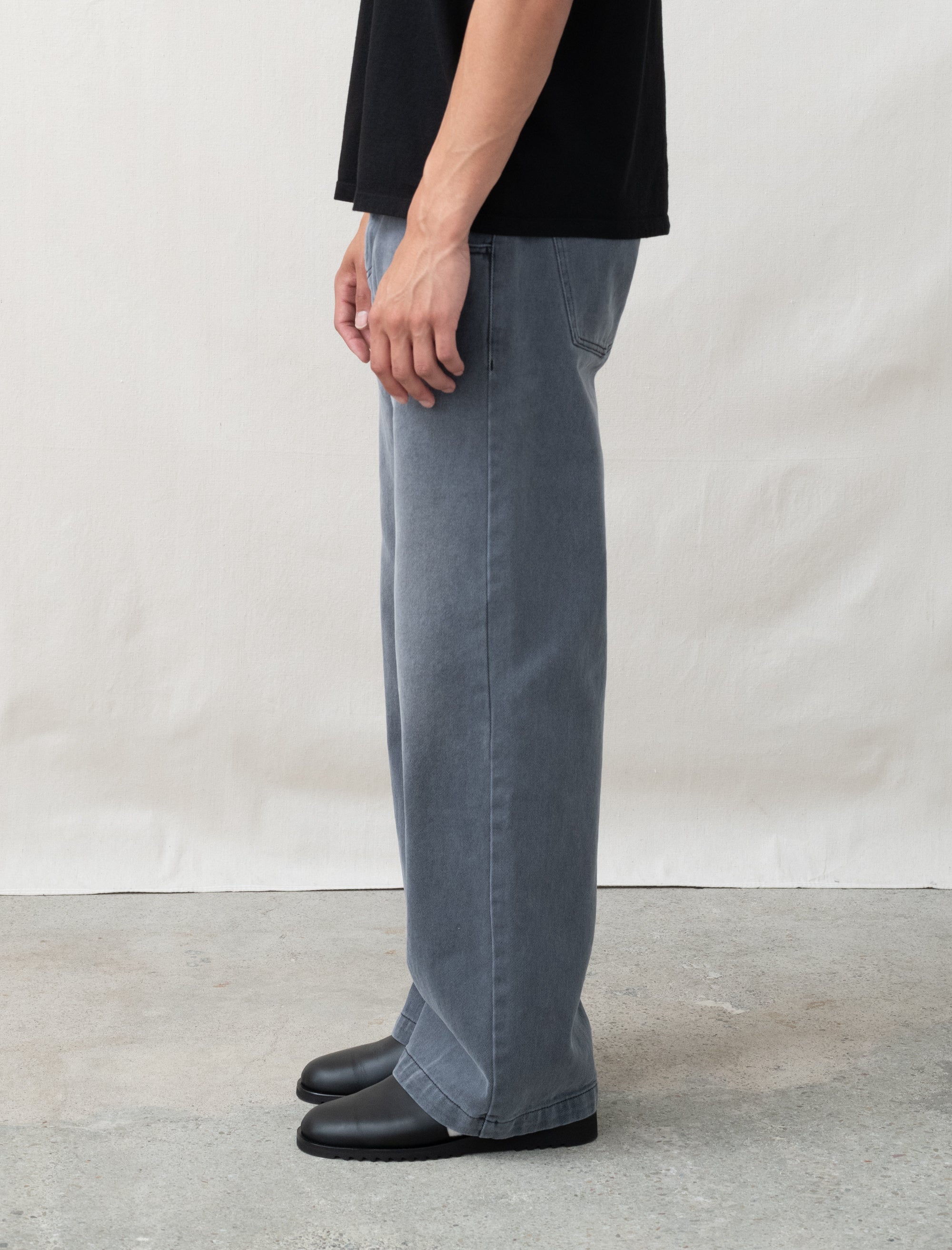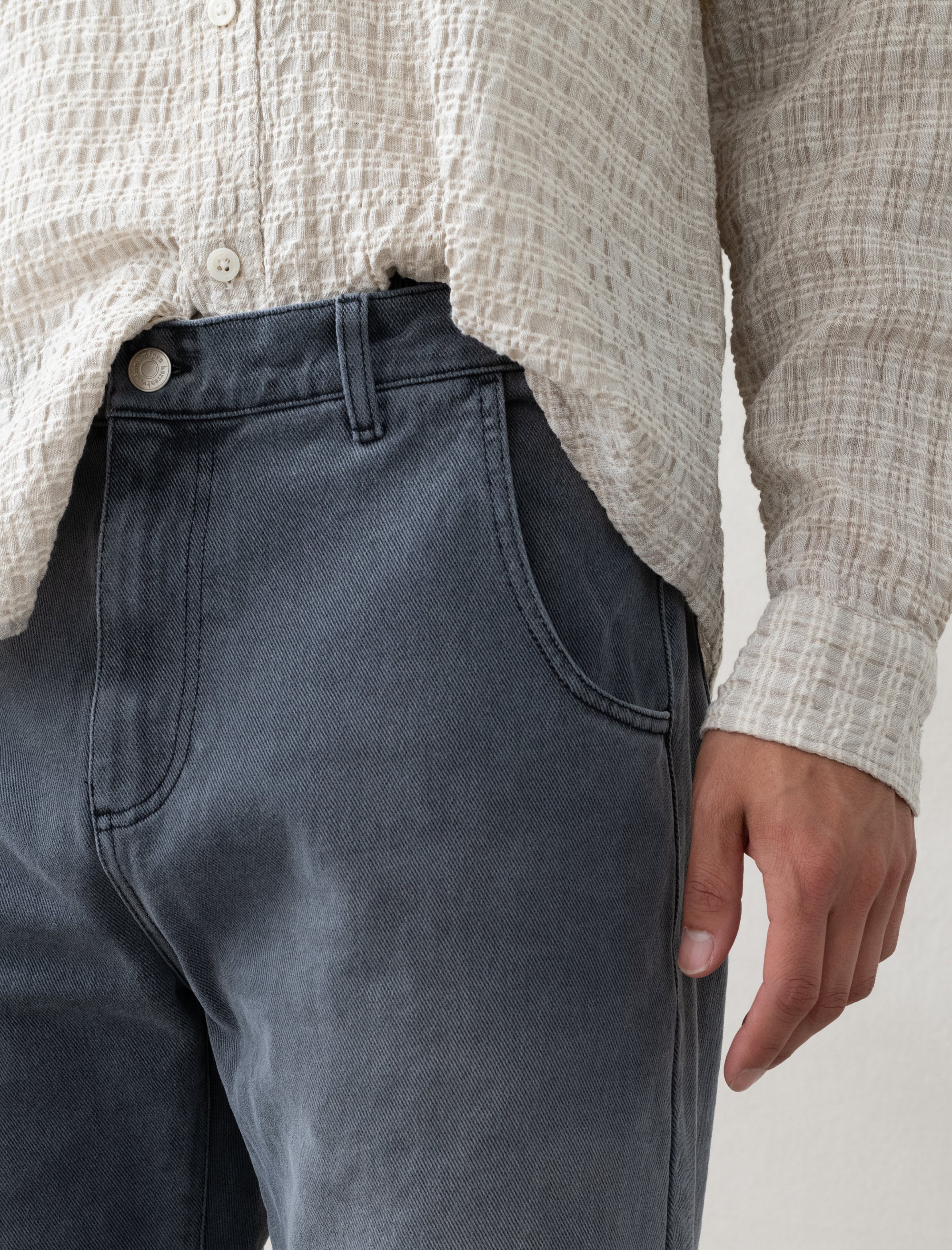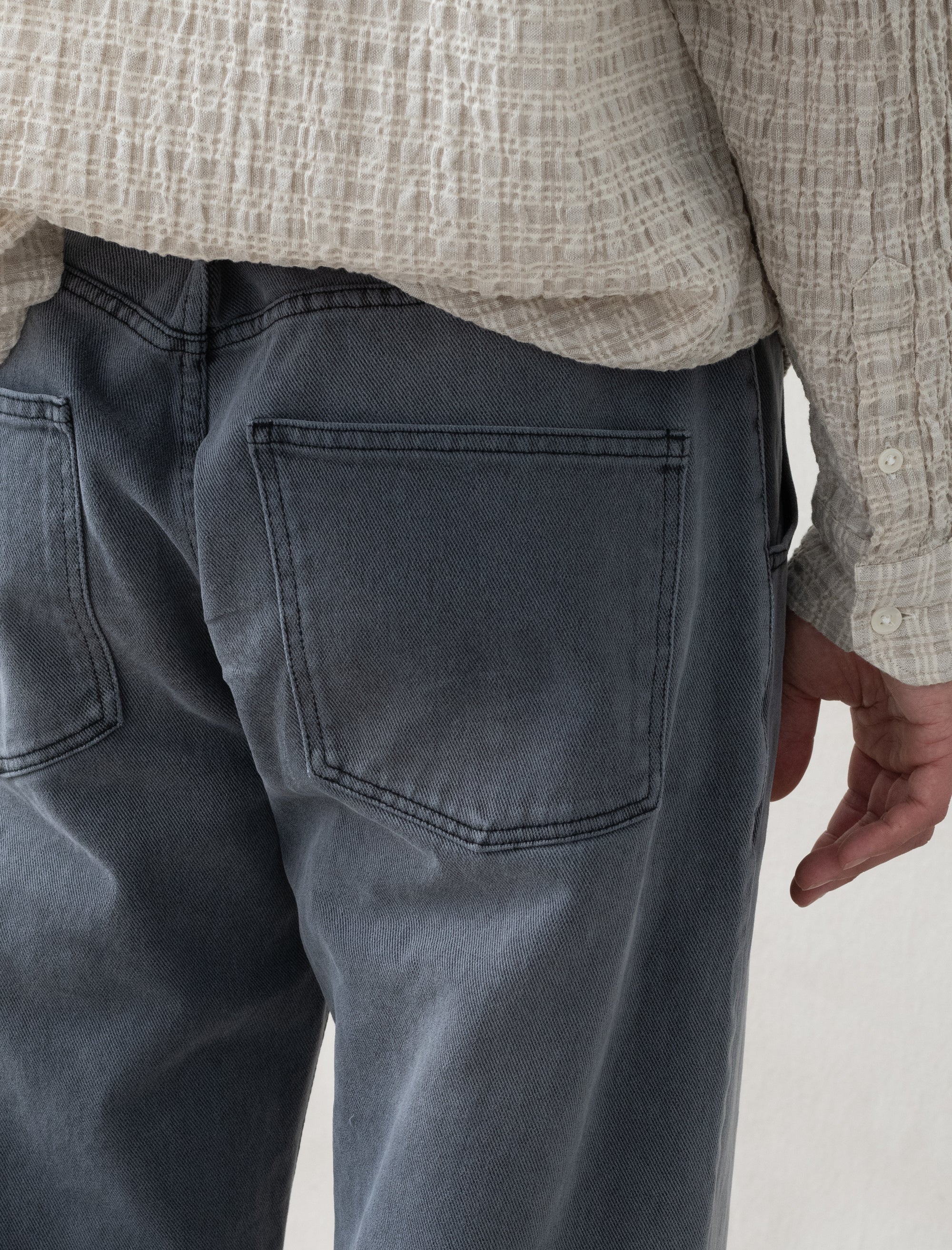 The Straight Cut Jeans has a relaxed straight fit with a mid-rise. Made with side pockets, rear patch pockets, metal button closure and YKK zip fly. Cut from a washed organic cotton denim twill, with color made from a cold dye.